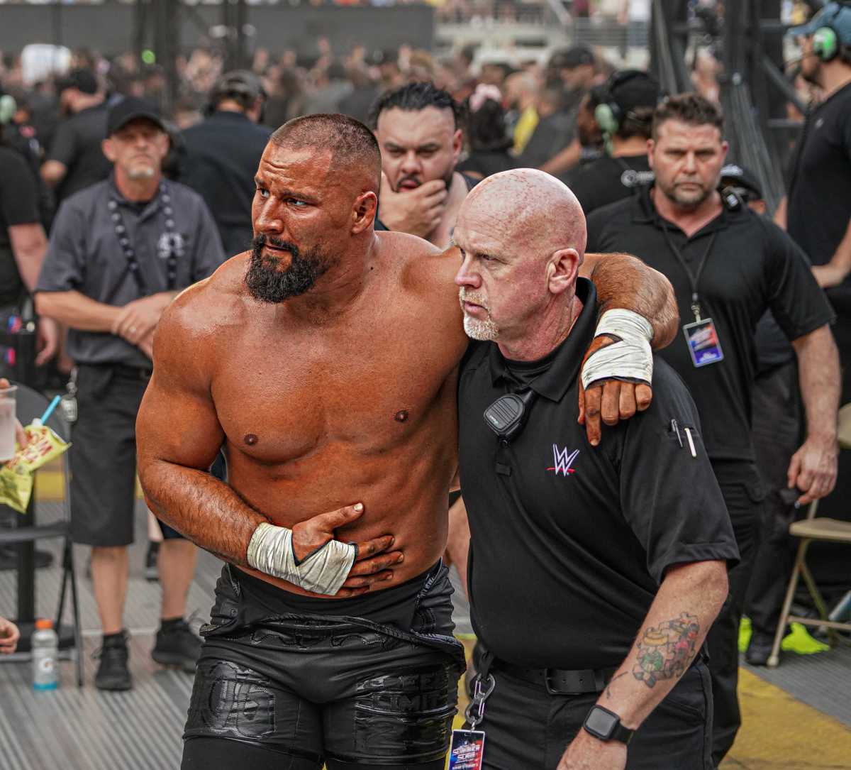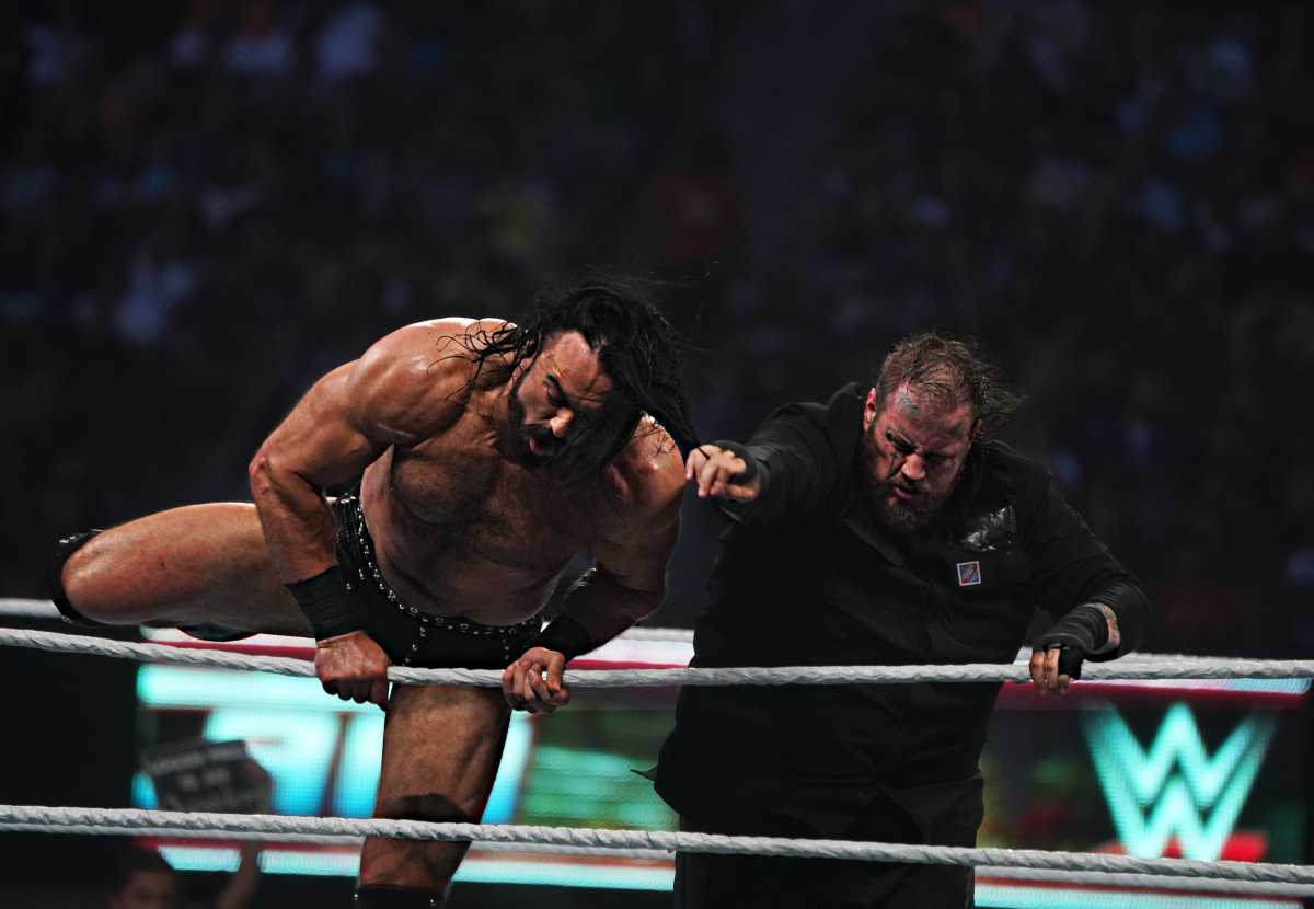Inside the open-roofed arena, fans chanted for their favorite wrestlers. Special celebrity guests, including Cardi B, who wore a long black dress, made appearances. The matches also featured celebrities, with singer Jelly Roll teaming up with Randy Orton to take on Logan Paul and Drew McIntyre.