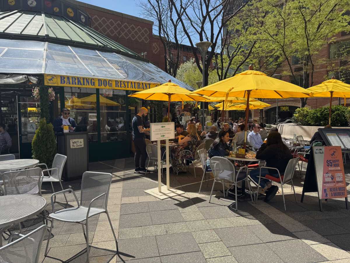 Nestled in the heart of Hell’s Kitchen and the theatre district, this restaurant’s spacious outdoor patio is located in the Worldwide Plaza complex, between 8th and 9th Avenue and West 49th and 50th Street. Serving tasty classic American favorites from egg dishes and pancakes to soups, wraps, sandwiches and fried chicken, it’s a welcoming atmosphere even to dogs. Pet owners can enjoy “yappy Hour” where from 4-10 pm guests with dogs receive 50% off drinks. Their sister restaurant in the same complex, Taqueria & Bar, also has spacious, inviting outdoor seating.