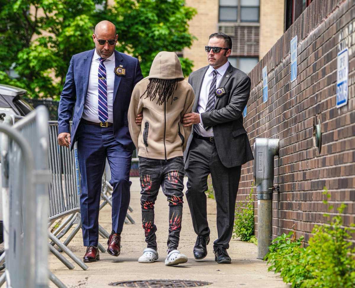 Detectives marched McLean out of the 47th Precinct on Thursday in handcuffs. With a hood pulled up tight over his head, his long hair covering his face, McLean bowed his head and refused to answer questions from reporters.