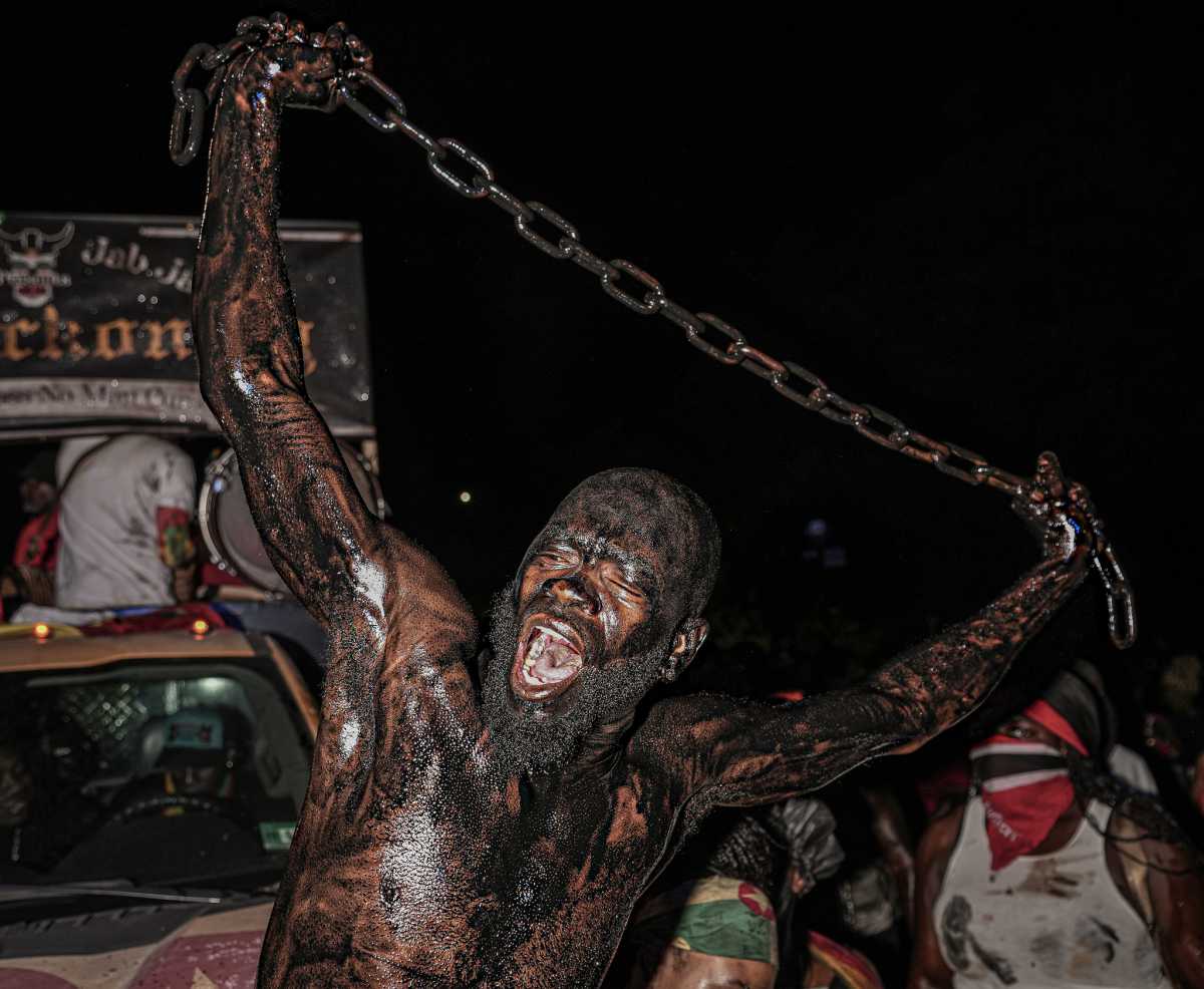 White t-shirts became soaked with oil, and faces were smeared with it as well. Steel bands pounded on their pans, filling the quiet streets with music.