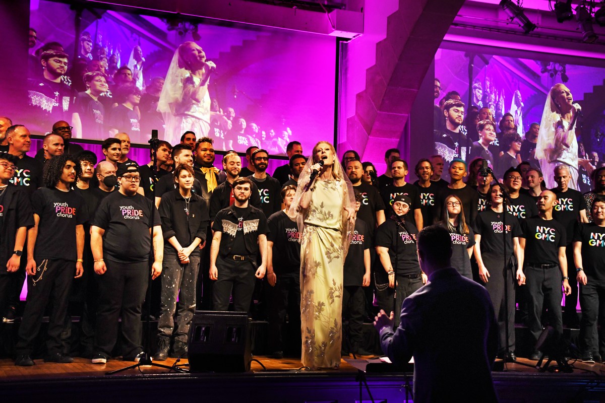 The concert, a free show, was standing room only as the NYCGMC began with “I Am America,” one of the many tunes performed that were written or arranged by trans artists. The chorus included an affinity group, Euphoria, which consists of all trans and non-binary performers and the Youth Pride Chorus singers, who range in age from 13 to 22.