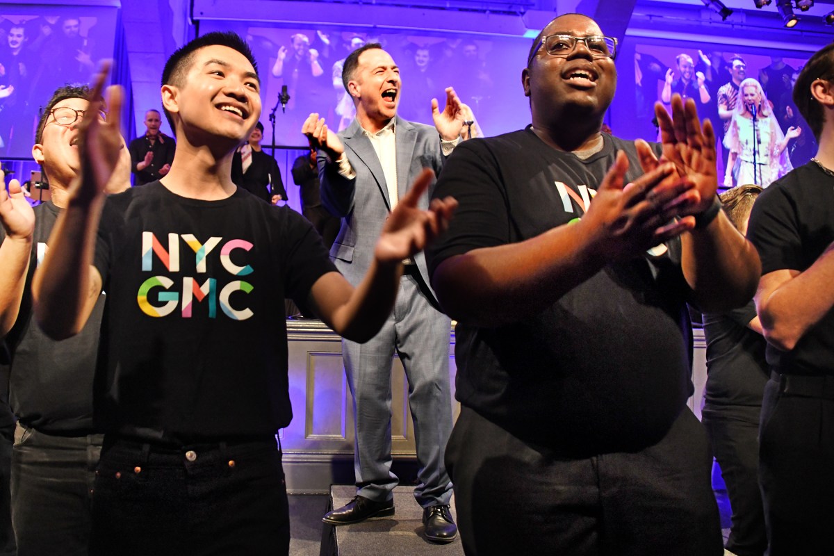 With all hands on deck, over 70 beautiful voices filled the hall under the enthusiastic direction of John J. Atorino, the artistic director of Big Apple Performing Arts and the NYCGMC. Atorino noted the significance of having Bond onstage with them, saying, “They have been a prominent voice in our community for decades and continue to perform at such a high caliber.”