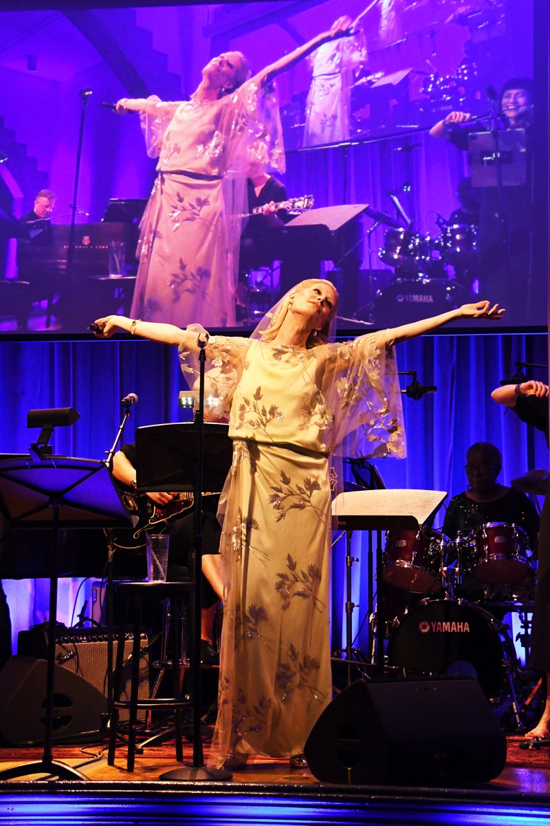 Bond fronted the choir for Melanie’s “Lay Down (Candles In The Rain)” before joining their regular band — Matt Ray (piano, musical director), Mike Jackson (bass), Bernice “Boom Boom” Brooks (drums), Nath Ann Carrera (guitar) and Claudia Chopek (violin) — for a set of songs written mostly by “our great lesbian, trans-singer and gender non-conforming songwriters.”