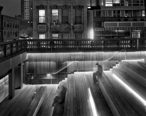 “Sitting on the High Line” adds a new perspective to one of New York’s most popular and iconic destinations. Shooting at night, Pillsbury creates a new cityscape by using the sunken overlook at West 17th Street and the buildings behind them as a stage. The long exposure makes the two people sitting on the steps transparent, while the two (look closely for them) in the first row are ghost-like. One or two ghostly figures seem barely visible in the facing windows. The night setting and the graphic effect created by the crisscrossing lines enhance the image’s strength. It’s one of my favorites.