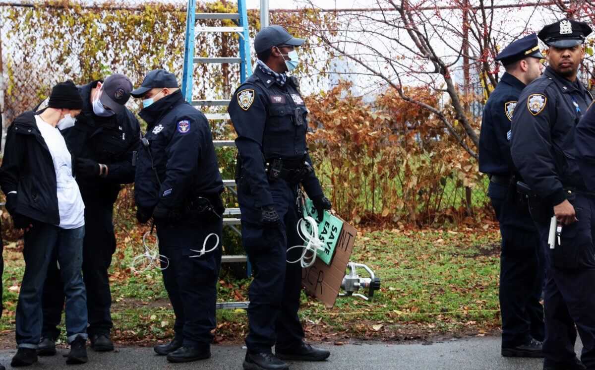 East River Park activists blocked the resuming construction of the East Side Coastal Resiliency Project (ESCR), leading to three individuals cuffed.