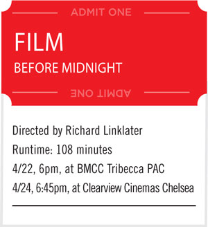 Like director Richard Linklater’s predecessors, “Before Sunrise” (1995) and “Before Sunset” (2004), “Before Midnight” was written with its two lead actors, Ethan Hawke and Julie Delpy. This collaboration has created a naturally eloquent conversation that flows organically on matters both philosophical and quotidian, and fills in the details of the couple that met and fell in love on a train trip almost 20 years ago.