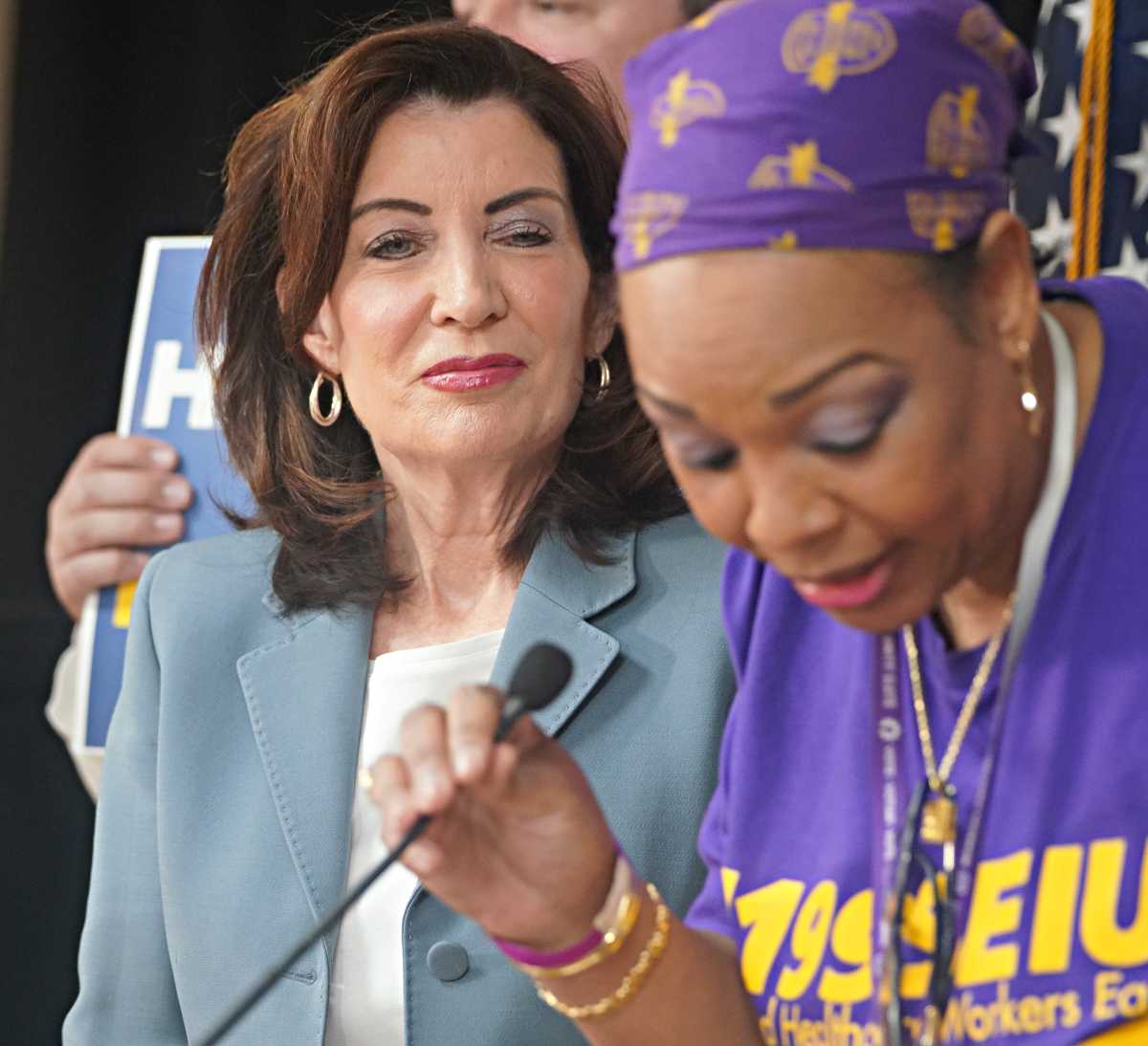 Gov. Kathy Hochul, House Minority Leader Hakeem Jeffries (D-Brooklyn), and hospital staff members railed on Sunday afternoon against a Trump-backed bill that they warned will gut funding for health care coverage for seniors and low-income New Yorkers.