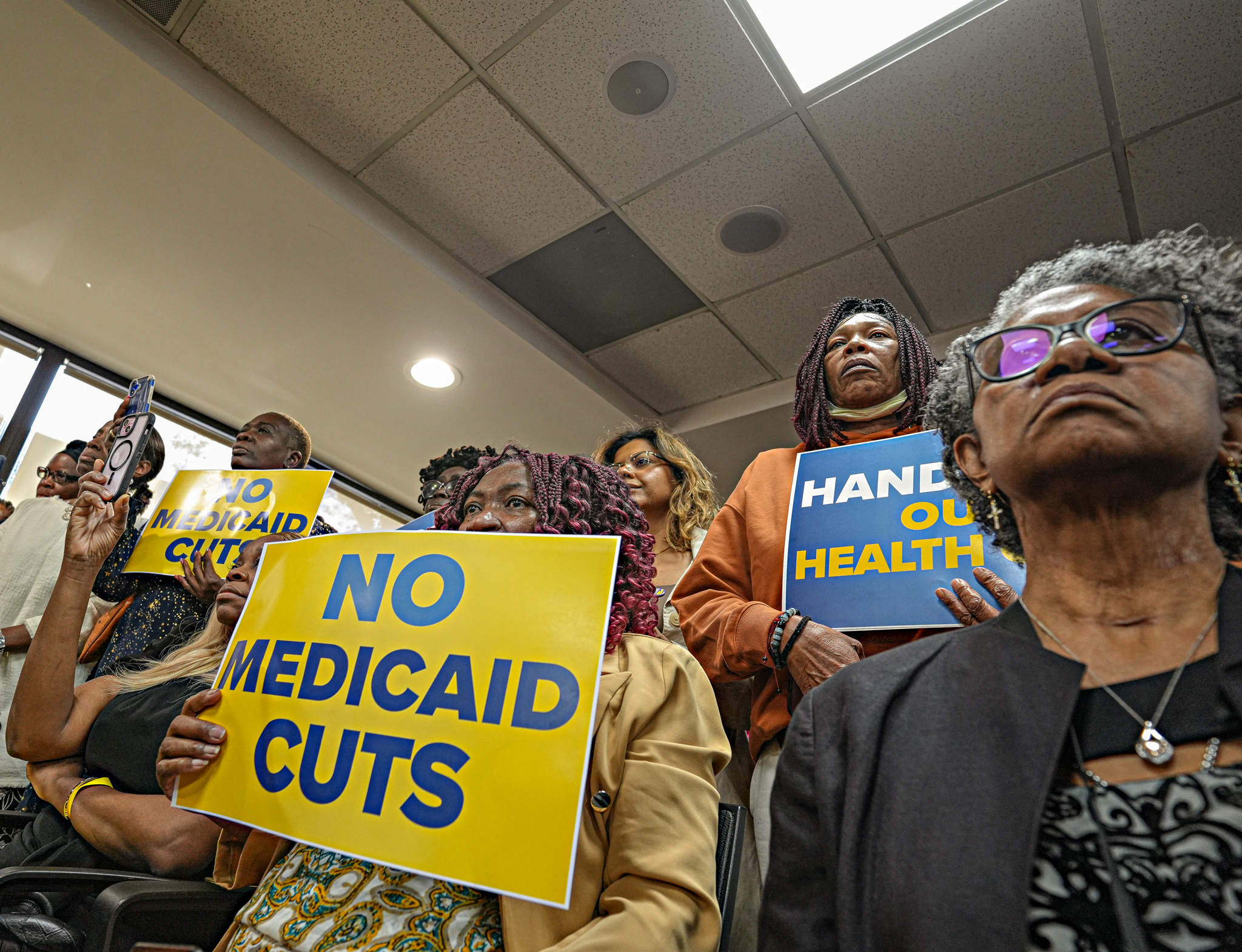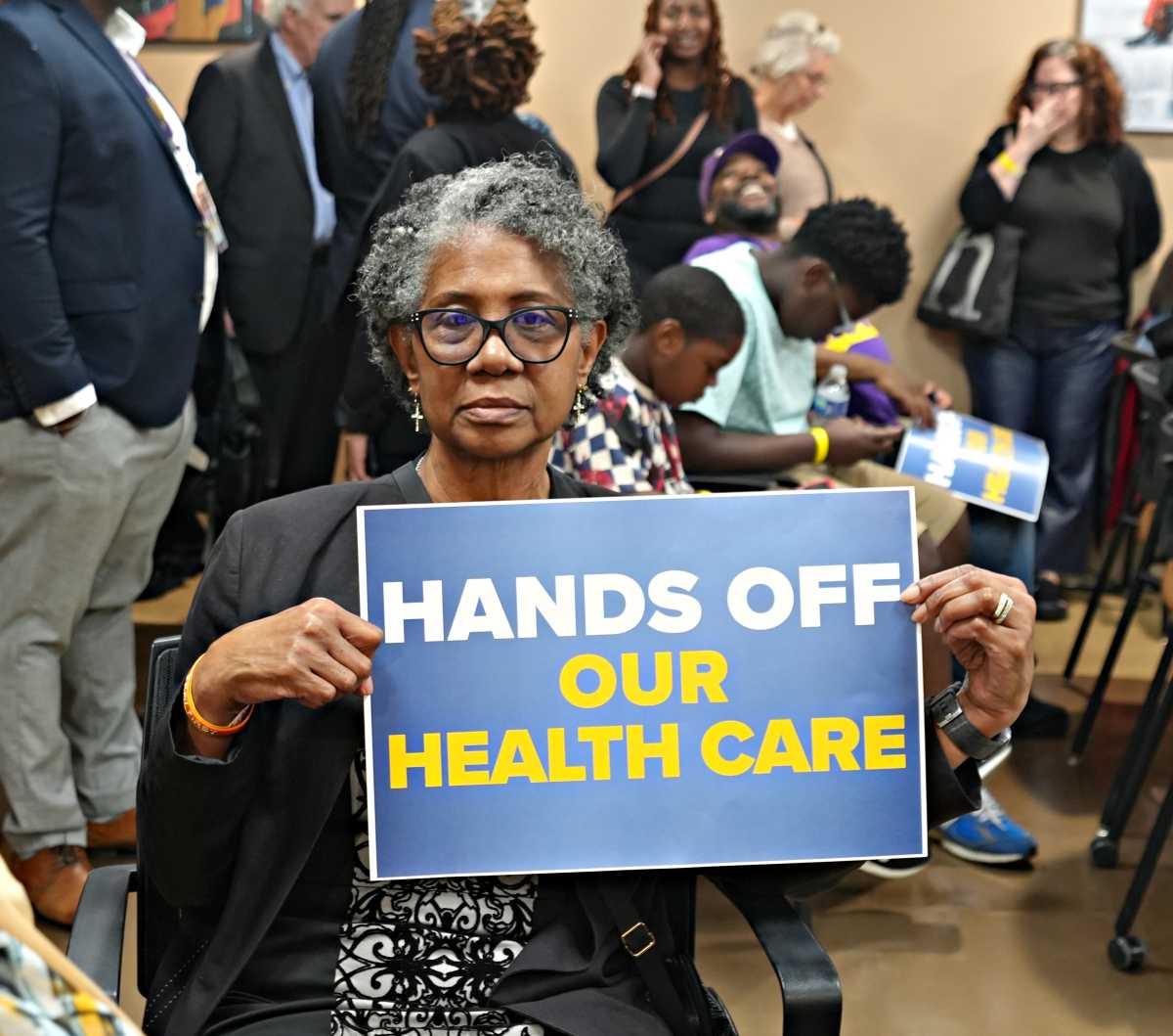In the crowd of spectators, staff and patients alike waved signs reading, “Hands off our Health care” and “No Medicaid Cuts.”