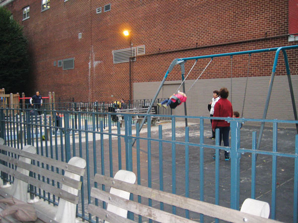 The playground in the film, now Sandbox Park, has also changed. Where once was a wall with graffiti is now clean, with a swing set in front of it. The benches the mothers sat on in the film have been moved in front of the swings. There is now a colorful large jungle gym with bridges and slides. There is still a sandbox.