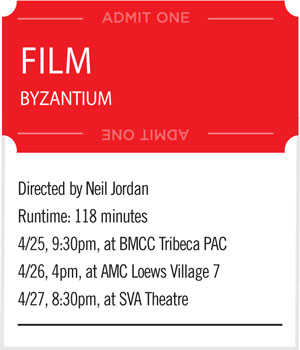 BY STEPHANIE BUHMANN | The British-Irish fantasy thriller “Byzantium” tells the story of Eleanor (Saoirse Ronan) — who, with her mother Clara (Gemma Arterton), forms a tight-knit vampire duo. They are both two centuries old, yet look not a day older than 16 and 35 (Clara had Eleanor young while working as a prostitute). Both survive on human blood, but each has their own almost endearing code of ethics for how to acquire food. Whereas Eleanor feeds only on the elderly, who express that they are ready to die anyway, Clara mainly kills the mean male abusers of this world (one scene shows her feasting on a street pimp).