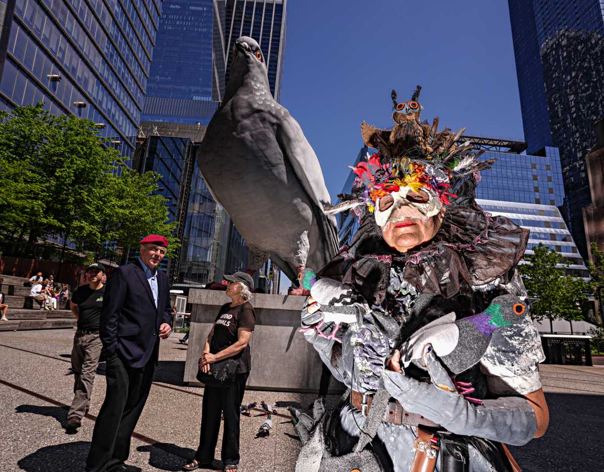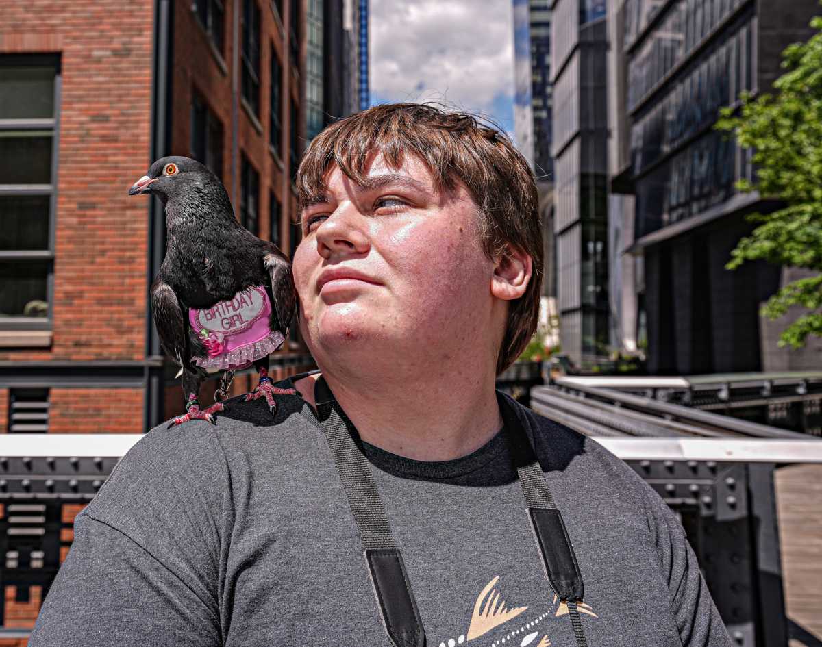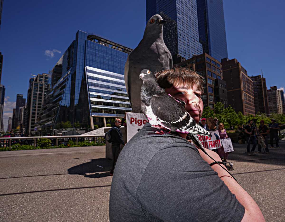 One young man traveled nine hours from Ohio with his pet pigeon, Osprey, for the bird’s first birthday. He made the trip to take photos with his beloved pet in front of the statue when he came across the protest.