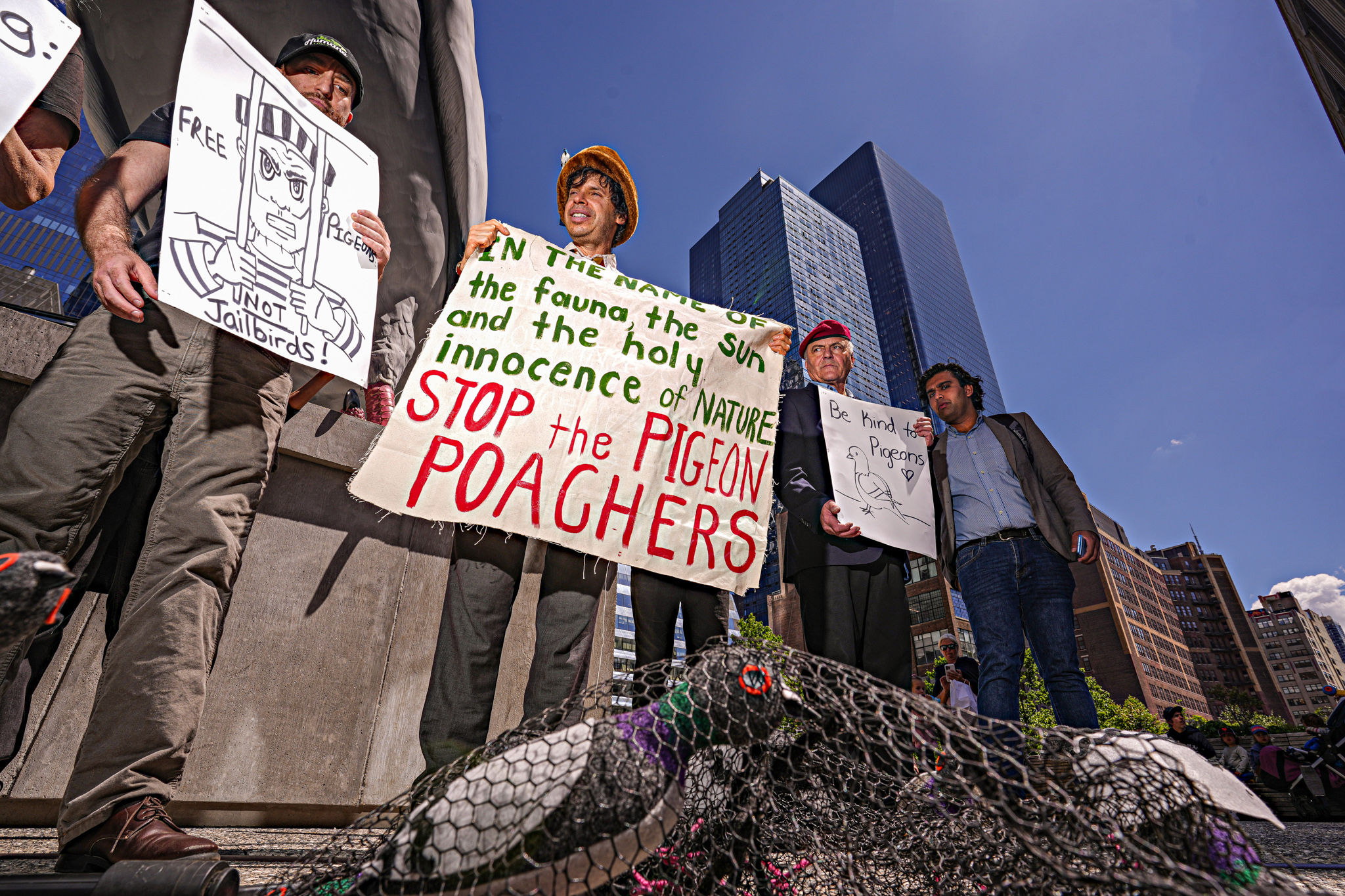 The protest came after amNewYork exclusively reported last week that a Pennsylvania man had been apprehended in the East Village’s Tompkins Square Park on April 30 for netting the Big Apple birds. Police say 67-year-old Dwayne Daley of Bushkill, PA, was also found to have had a van on site containing some 25 caged pigeons.